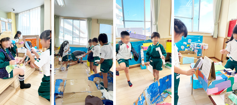 2組では水族館が、4月からずっと続いています。チケット販売があり、お土産屋さんもあって、「こちらも見ていってくださいね」と案内してくれたりして、流れがちゃんとできているのが印象的でした。