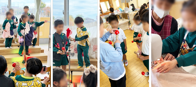 2組さんは少ししか見ることができませんでしたが、年長児や年中児が遊ぶのを見て、真似をしているんだなということが伝わってきました。衣装を作ったりとか、食べ物などもすごく見て真似してるんだなっていうのを、すごく感じました。