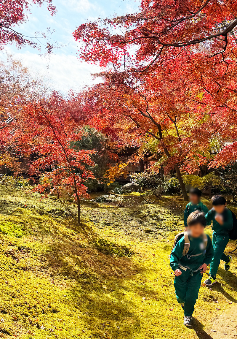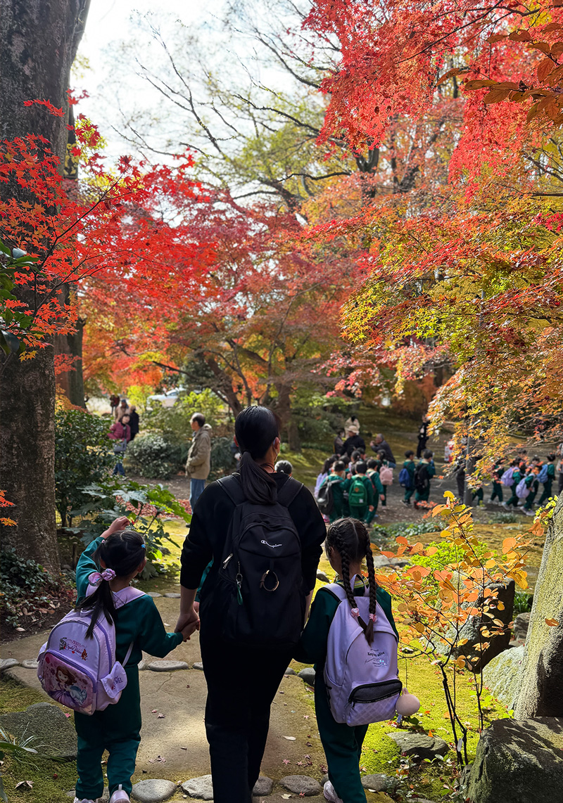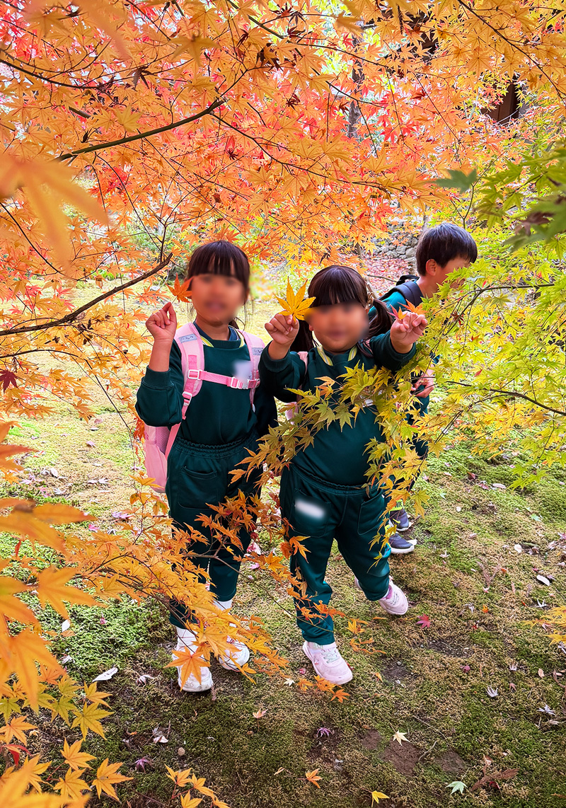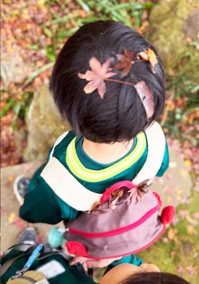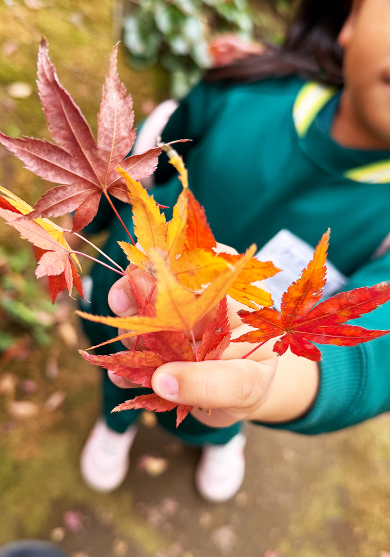 紅葉の時期に合わせて来たことで落ち葉を拾ったり日本の秋の自然の美しさを感じる良い機会になりました。